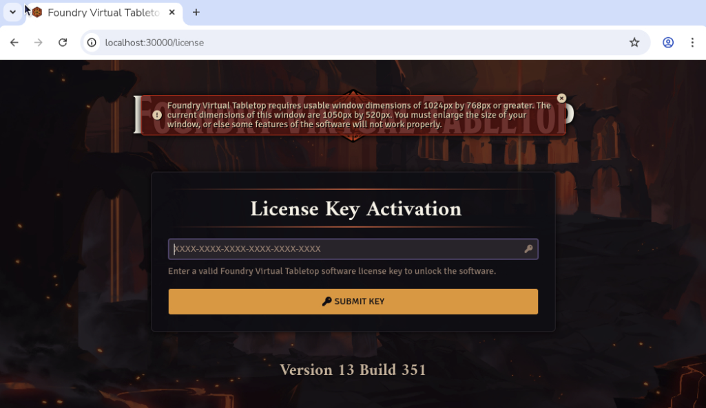 node ~/foundryvtt/resources/app/main.js --dataPath=$HOME/foundrydata - Im Browser verbinden: