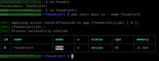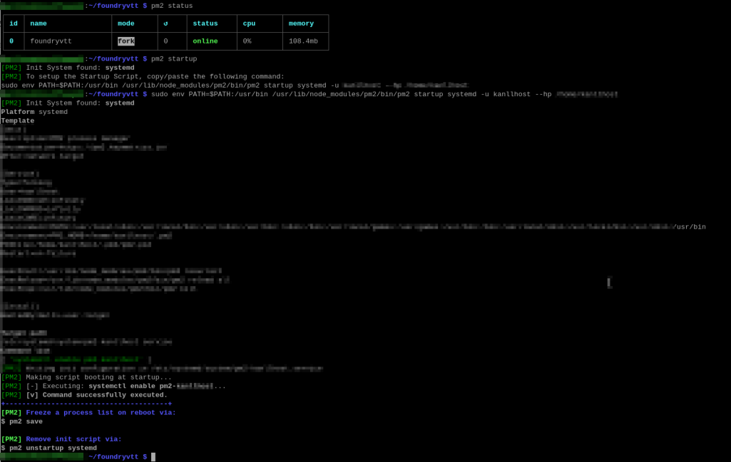 Damit Foundry automatisch startet und im Hintergrund läuft, bietet sich ein der nodejs-Prozessmanager pm2 an (Node.js bereits installiert)