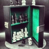 Grumpy-Schachfiguren + Brett + lederne Schachbox